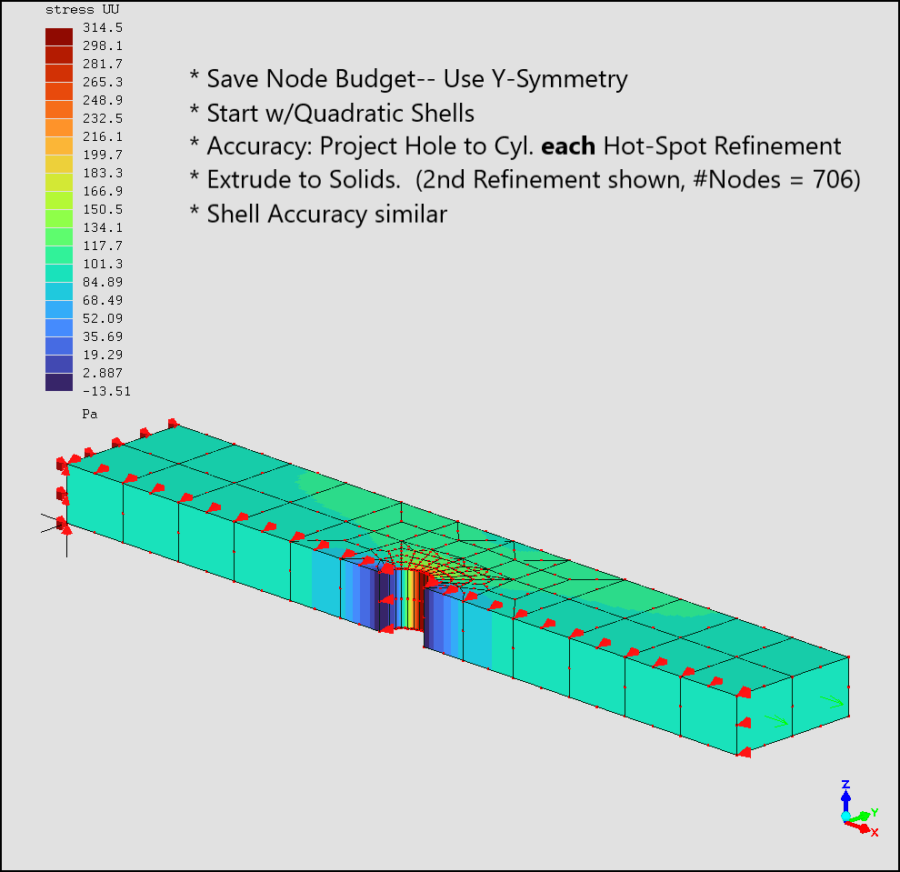• Yes, I did mesh by hand. Simple Rectangle Shell/ Refine evenly to locate center for Hole Tool.