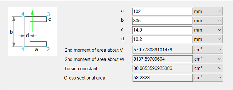 When looking at the C Chanel element geometric properties I don’t see any change in the Moment of inertia when the C Chanel is offset. Second moment of inertia about V should be increasing if I’m not wrong. isn't?¿