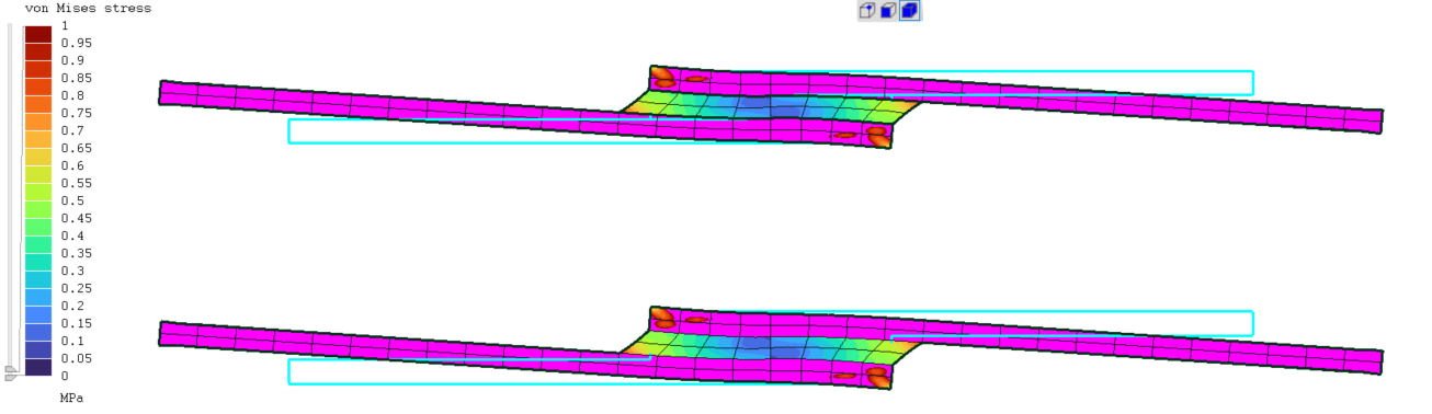 If I have to use CCX, I don't get that choice and only node values are available which means that the stress shown at the interface between the adhesive and the bonded parts is way off due to its much lower elastic modulus.