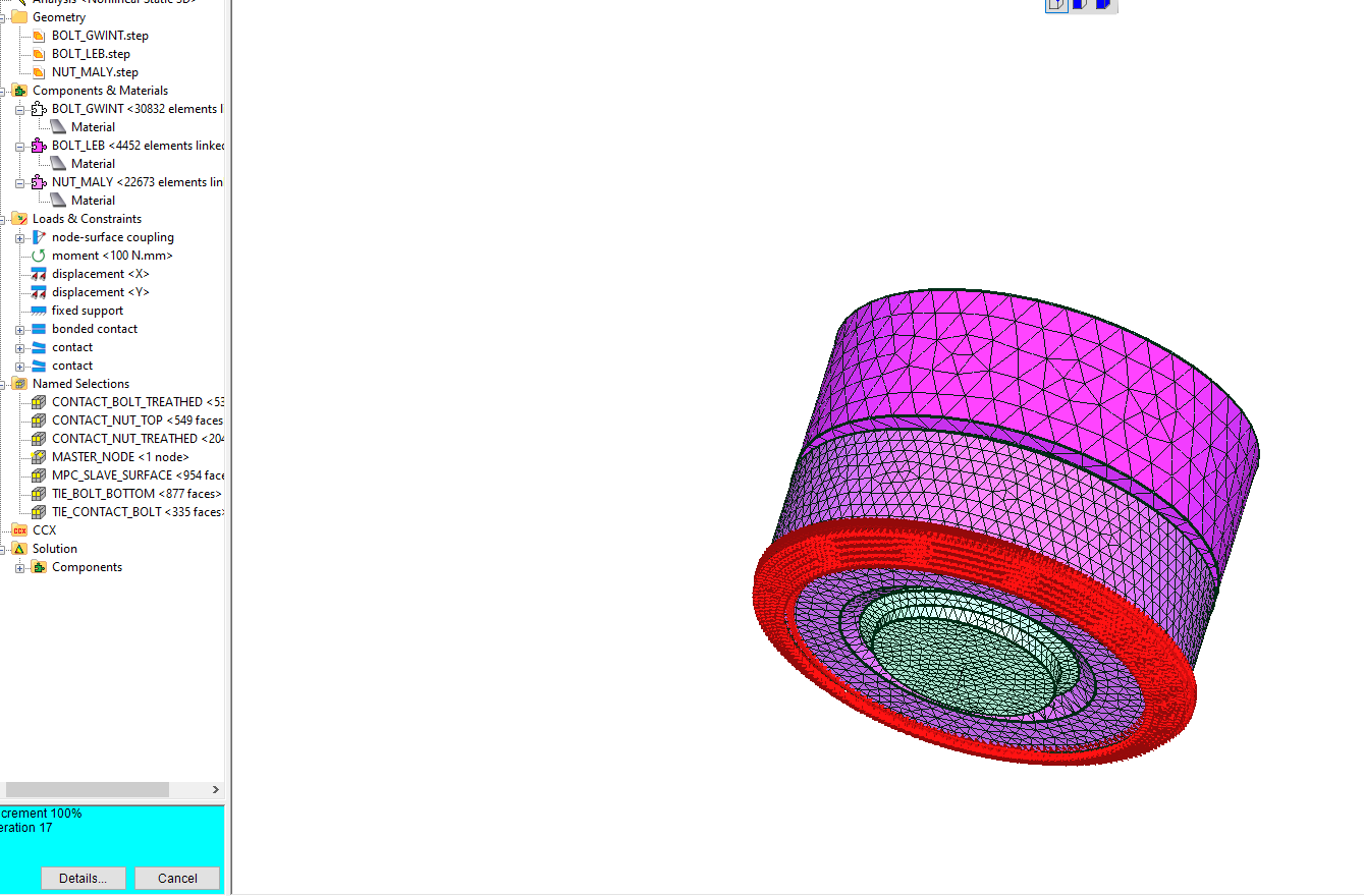 • Mecway doesn't participate in the solving with CCX so that memory is just what it uses for its internal data and things. If you're really tight on memory, you might need to save the model as .inp, close Mecway, then run ccx on that directly instead of with the solve button.